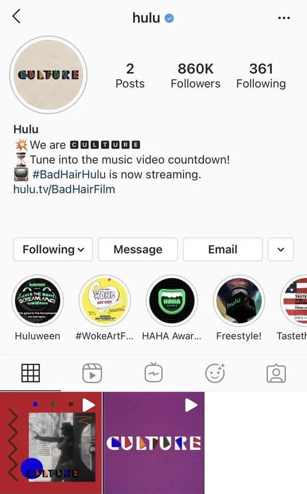 Work: @hulu social (cross-functional collaboration with Hulu Originals, PR, and studio partners)