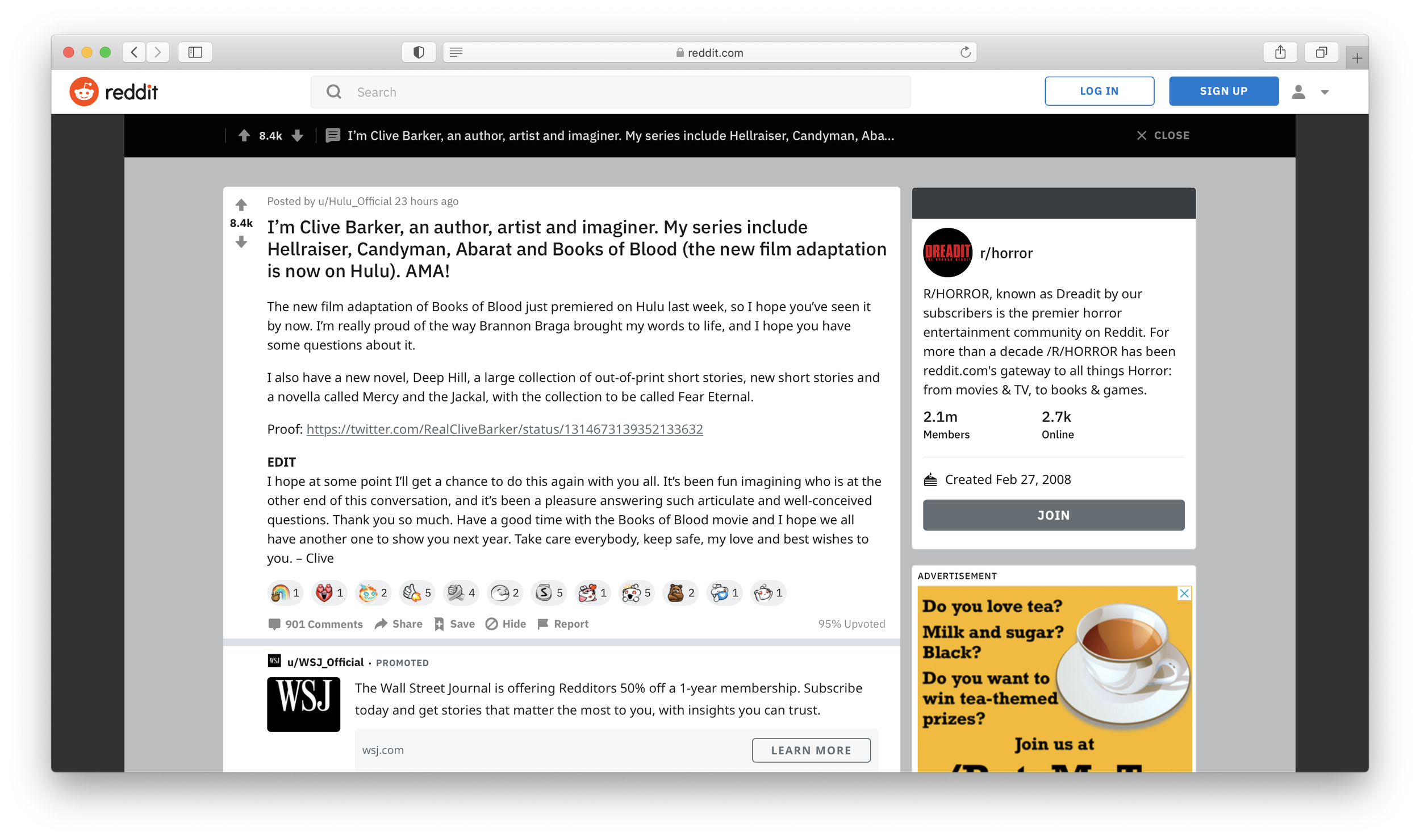 We kicked off the campaign with a Reddit AMA with Clive Barker himself on r/horror. Because we spoke directly to our core fans, the AMA was our most effective execution and had the most reach.