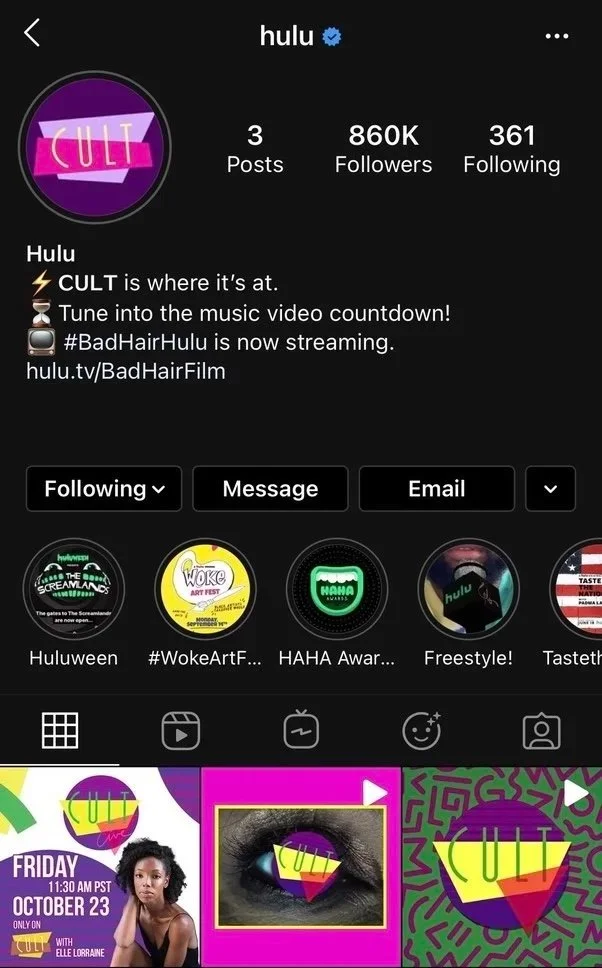To start, we immersed our audience with an in-world Instagram takeover, going from the vibrant Culture TV station (from the movie) to the spooky Cult.
